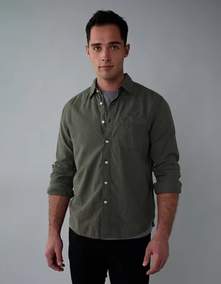 AE Long-Sleeve Linen-Blend Button-Up Shirt