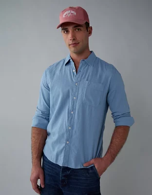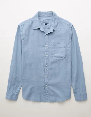 AE Long-Sleeve Linen-Blend Button-Up Shirt