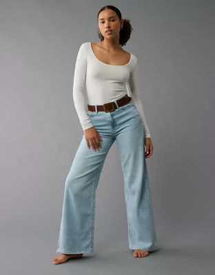 AE Dreamy Drape Stretch Curvy Super High-Waisted Baggy Wide-Leg Jean