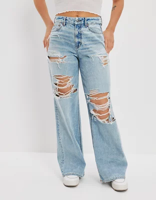 AE Strigid Ripped Curvy Super High-Waisted Baggy Wide-Leg Jean