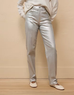 AE Stretch Metallic Super High-Waisted Baggy Straight Jean