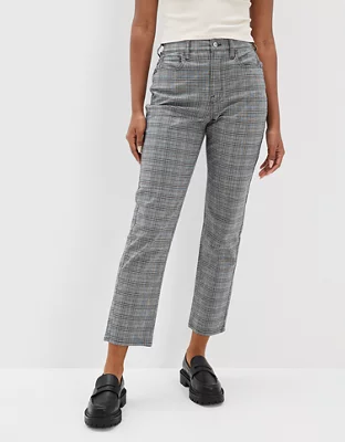 AE Stretch Plaid Mom Straight Pant
