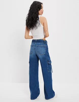 AE Dreamy Drape Stretch Super High-Waisted Cargo Baggy Wide-Leg Jean