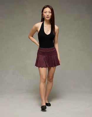 AE It Knit Low-Rise Pleated Plaid Skort