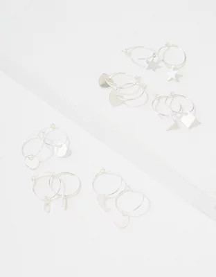 AEO Silver Charm Hoop Earrings 6-Pack