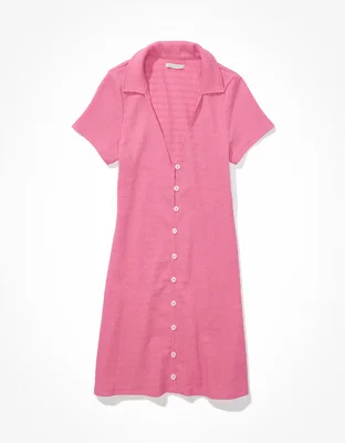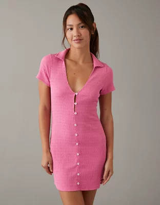AE Smocked Button-Front Polo Mini Dress