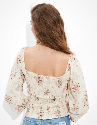 AE Smocked Square-Neck Blouse