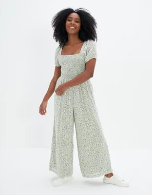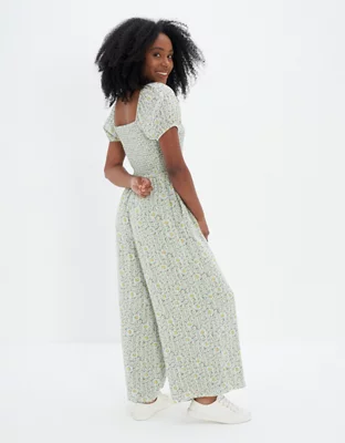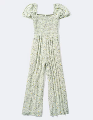 AE Smocked Puff-Sleeve Jumpsuit