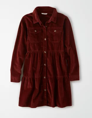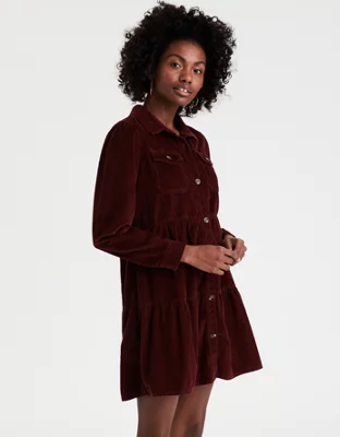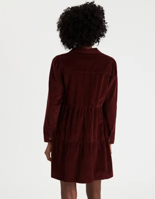 AE Corduroy Button-Up Babydoll Shirt Dress