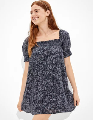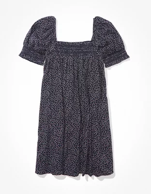 AE Floral Smocked Puff-Sleeve Babydoll Dress