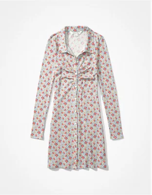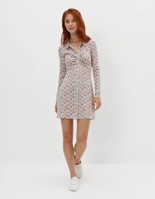 AE Knit Ruched Front Long-Sleeve Mini Dress