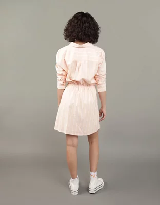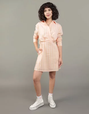 AE Long-Sleeve Faux Wrap Mini Shirt Dress