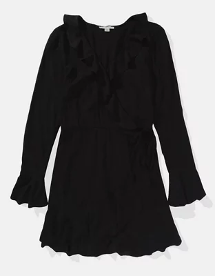 AE Long-Sleeve Wrap Mini Dress