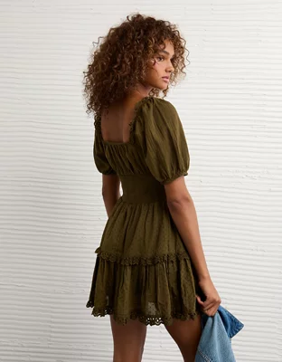 AE Puff Sleeve Smocked Tiered Mini Dress