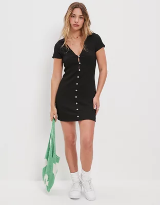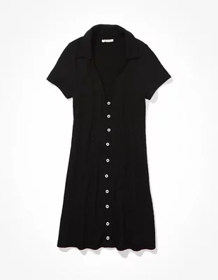 AE Smocked Button-Front Polo Mini Dress