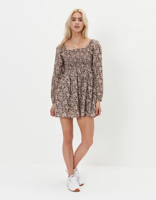 AE Smocked Long-Sleeved Mini Dress