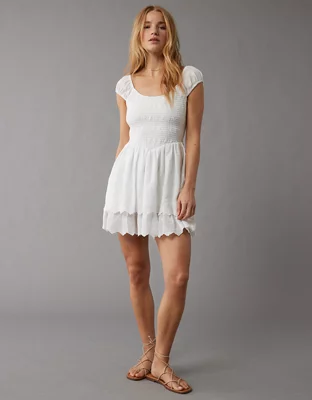 AE Smocked Puff Sleeve Ruffle Mini Dress
