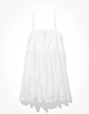 AE Solid Embroidered Tiered Babydoll Dress