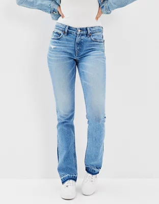 • The '90s fit you love with a low rise and mini "kick" flare opening