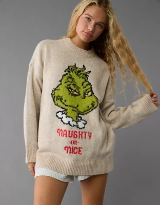AE Whoa So Soft Oversized Grinch Holiday Sweater