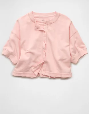 AE Saturday Fleece Button-Up Cardigan Sweater