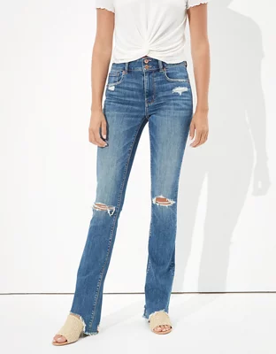 • High-waisted jean with wider waistband & double shank (space between button & fabric for comfort)