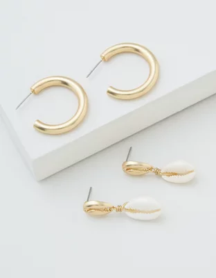 AEO Cowrie Shell + Hoop Earrings 2-Pack