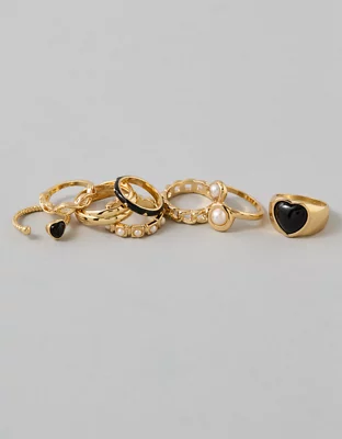 AE Black & Gold Heart Rings 8-Pack