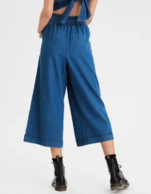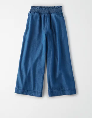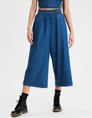 AE High-Waisted Denim Smocked Culotte