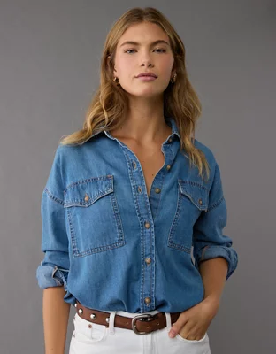 AE Dreamy Drape Denim Perfect Button-Up Shirt