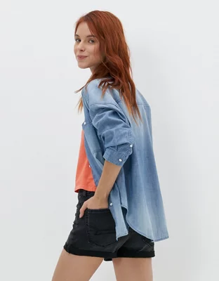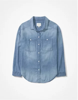 AE Bestie Long-Sleeve Denim Button-Up Shirt