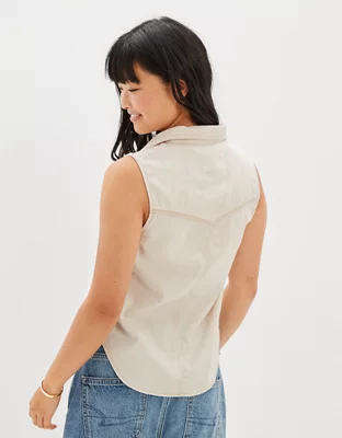 AE Sleeveless White Denim Button-Up Vest