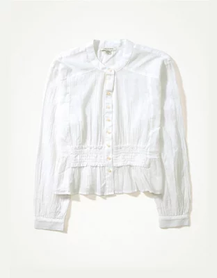 AE Long-Sleeve Button-Up Tunic Blouse