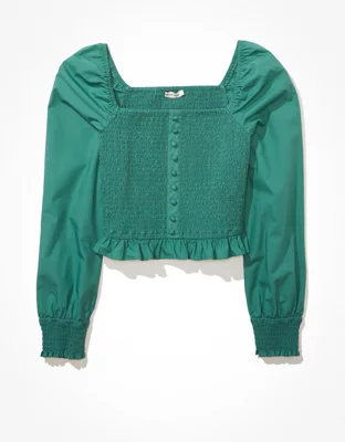 AE Square Neck Smocked Ruffle Blouse