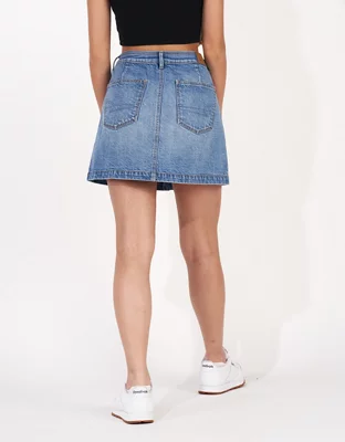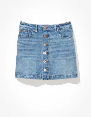 AE Button-Front Denim Mini Skirt