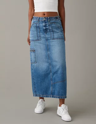 AE Low-Rise Denim Maxi Skirt