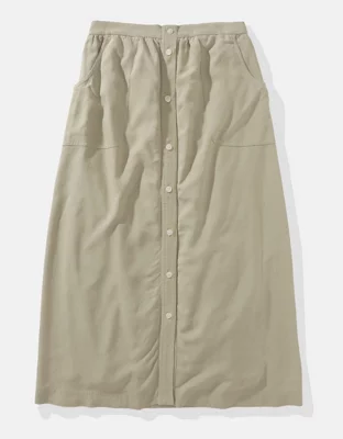AE Button Front Midi Skirt