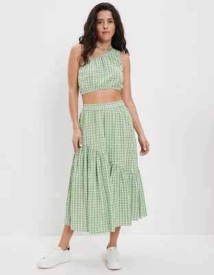 AE Gingham Asymmetrical Tiered Midi Skirt