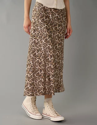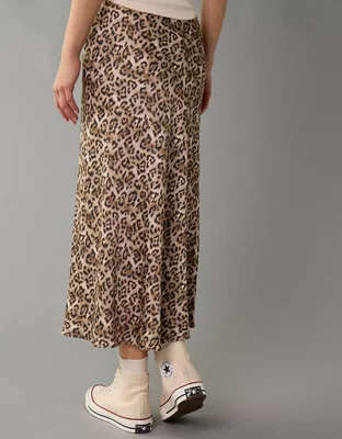 AE High-Waisted Satin Midi Slip Skirt