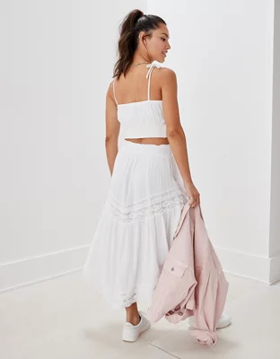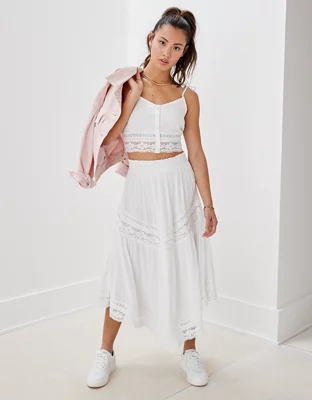 AE Lace Tiered Midi Skirt