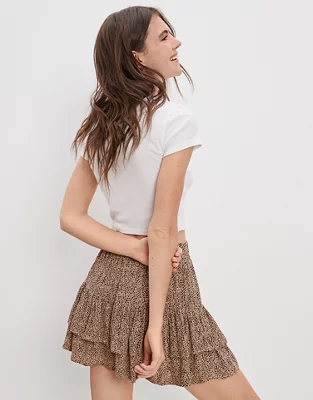 AE Tiered Ruffle Tie-Waist Printed Mini Skirt