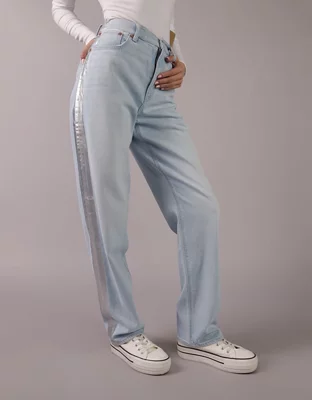 AE Strigid Super High-Waisted Baggy Straight Side Stripe Jean