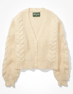 AE Cropped Cable Knit Button-Up Cardigan