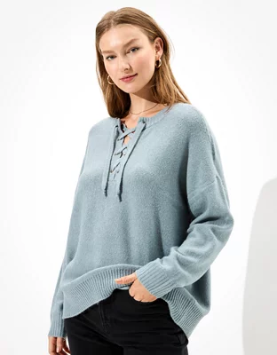 AE Oversized Lace Up Crew Neck Sweater