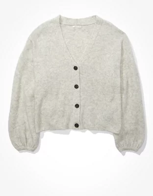 AE Cropped Balloon Sleeve Button Up Cardigan