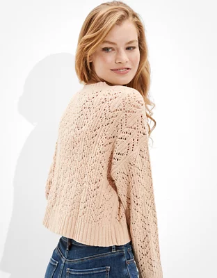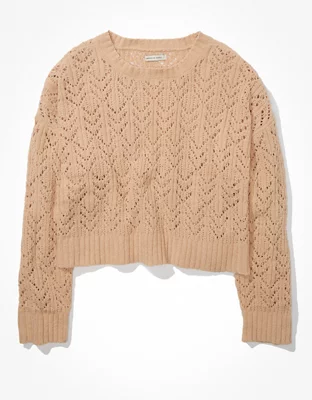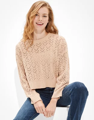 AE Cropped Pointelle Crew Neck Sweater