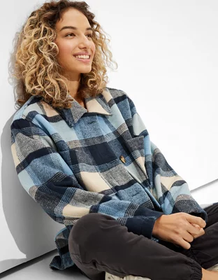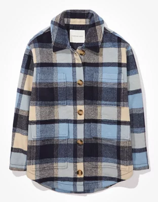 AE Oversized Plaid Flannel Shirt Jacket