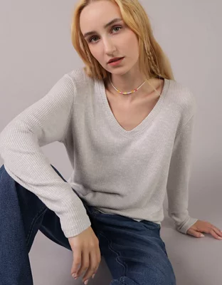 AE Plush Long-Sleeve V-Neck T-Shirt