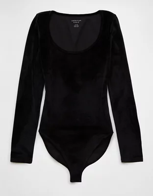AE Long-Sleeve Scoop Neck Velvet Bodysuit