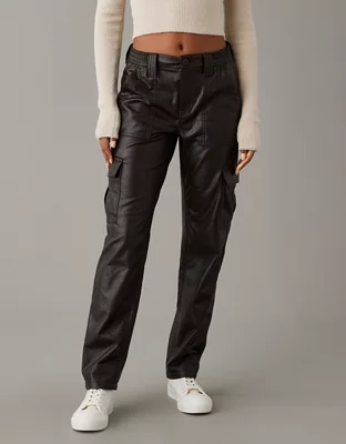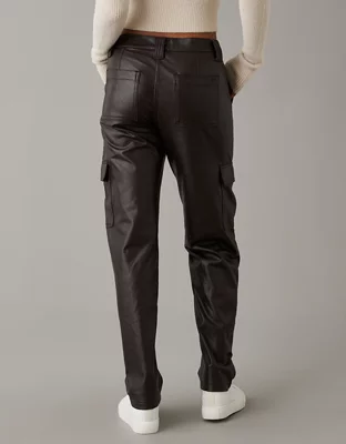 AE Stretch High-Waisted Vegan Leather Straight Cargo Pant
